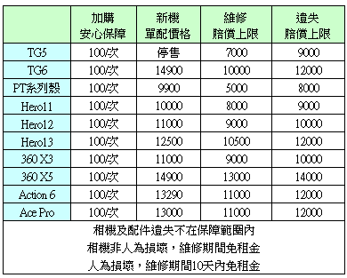 相機_損壞賠償: 租用人請歸還剩餘配件, 若發生故障情形,會統一送原廠處理,依照原廠報價單報修,賠償上限不高於遺失賠償金額