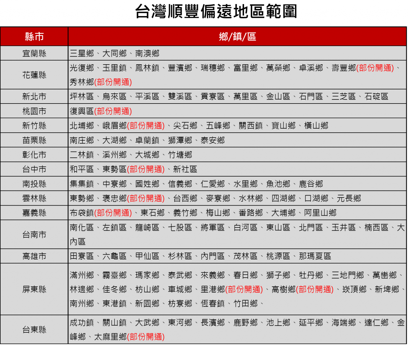 ※部分未在表列之偏遠地區,需在跟物流確認